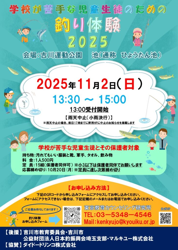 東京教育カウンセリング研究所初の釣り体験イベントを11月2日(日)吉川運動公園にて行います!